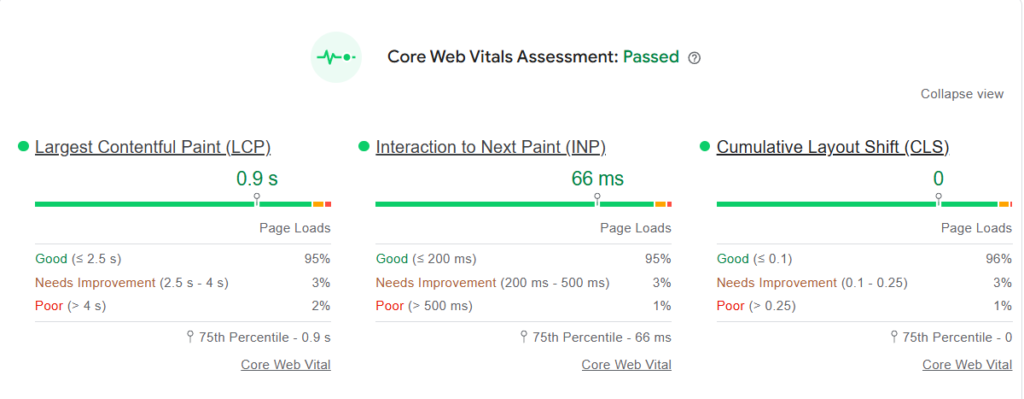 • Mobile Score: Even on mobile devices, the site maintained a green zone performance.